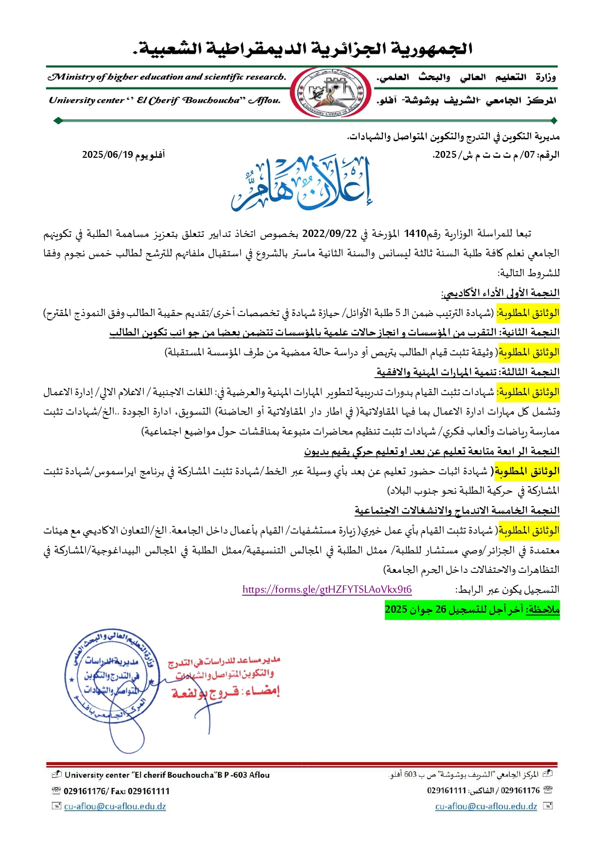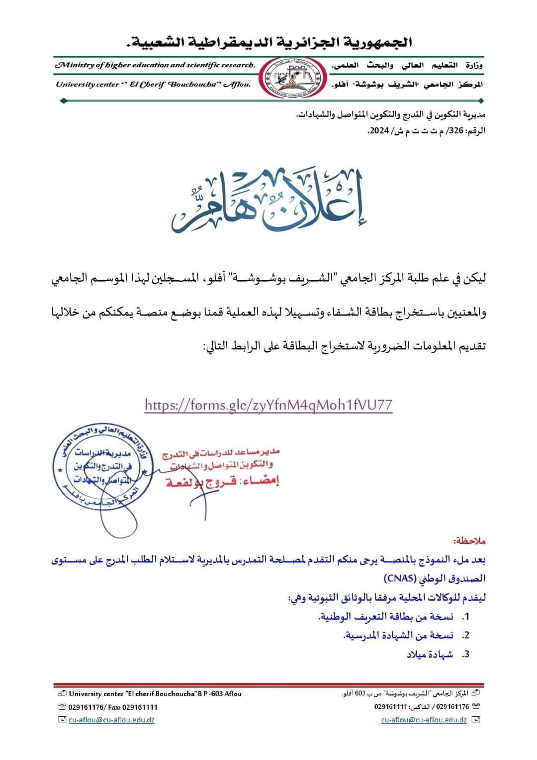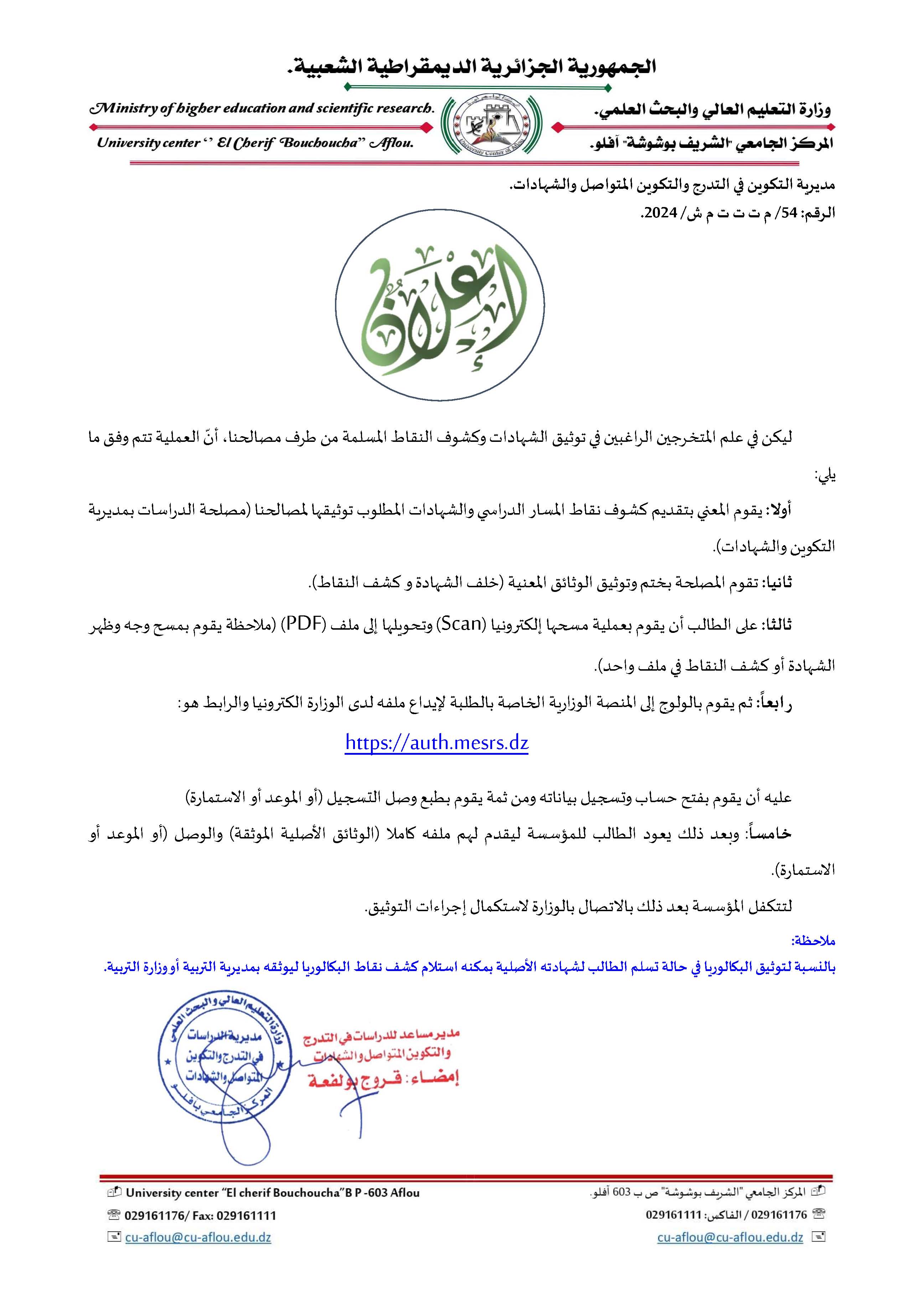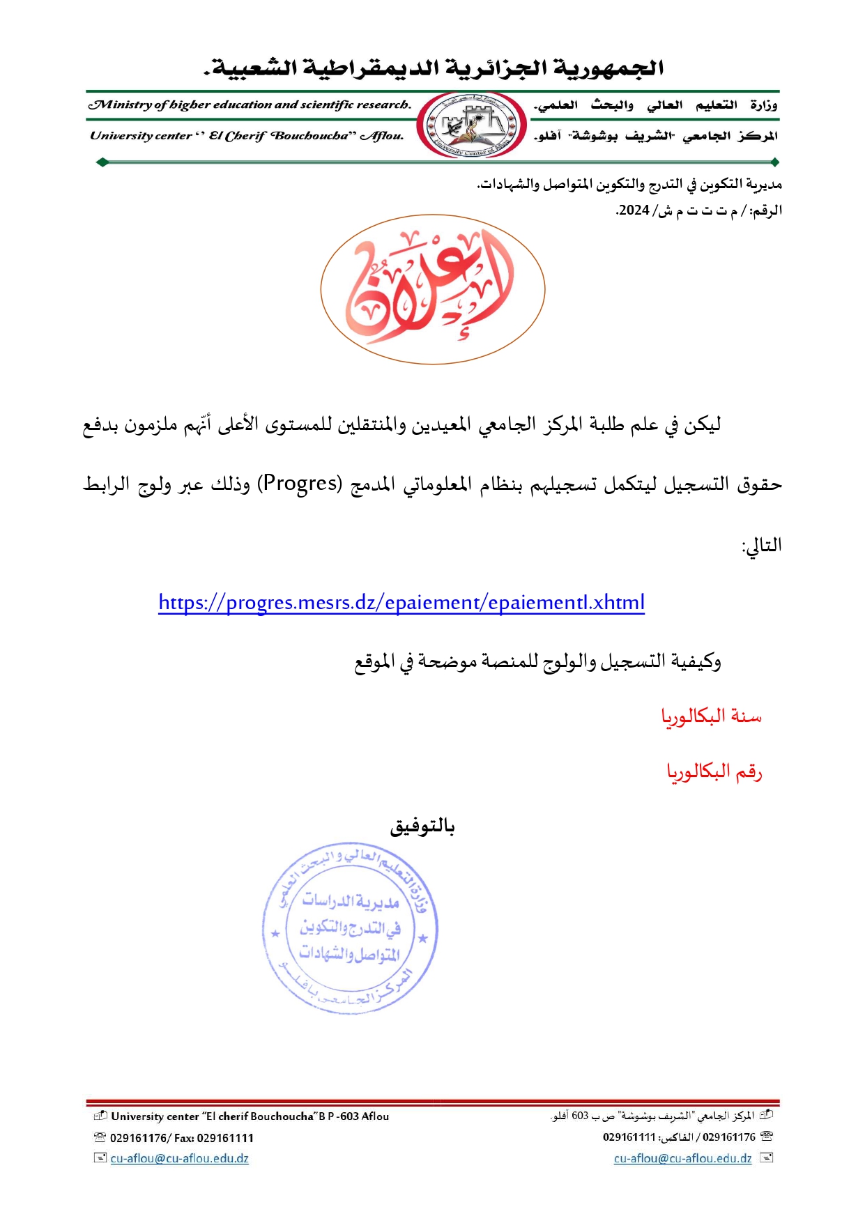 بوابة المركز الجامعي آفلو للناجحين في البكالوريا
