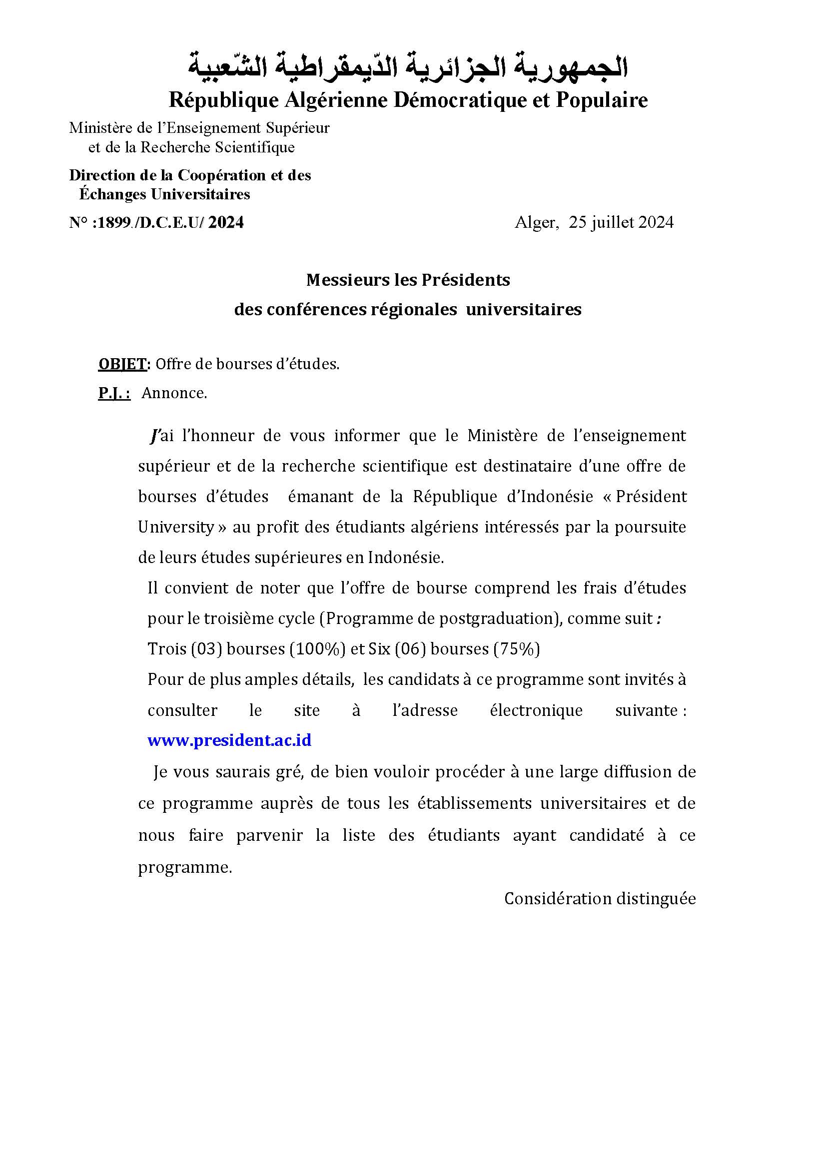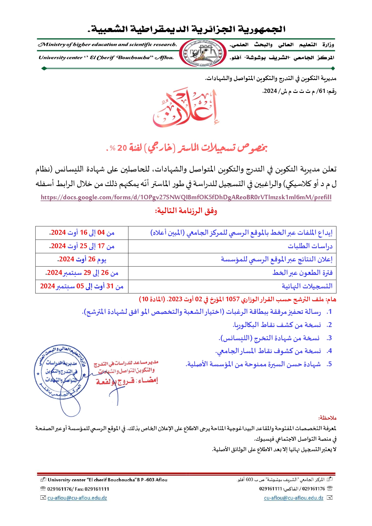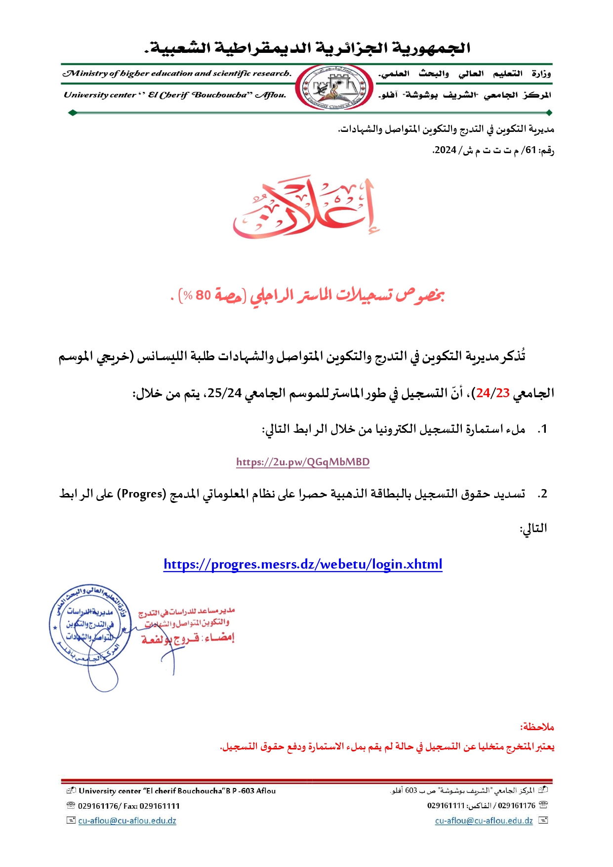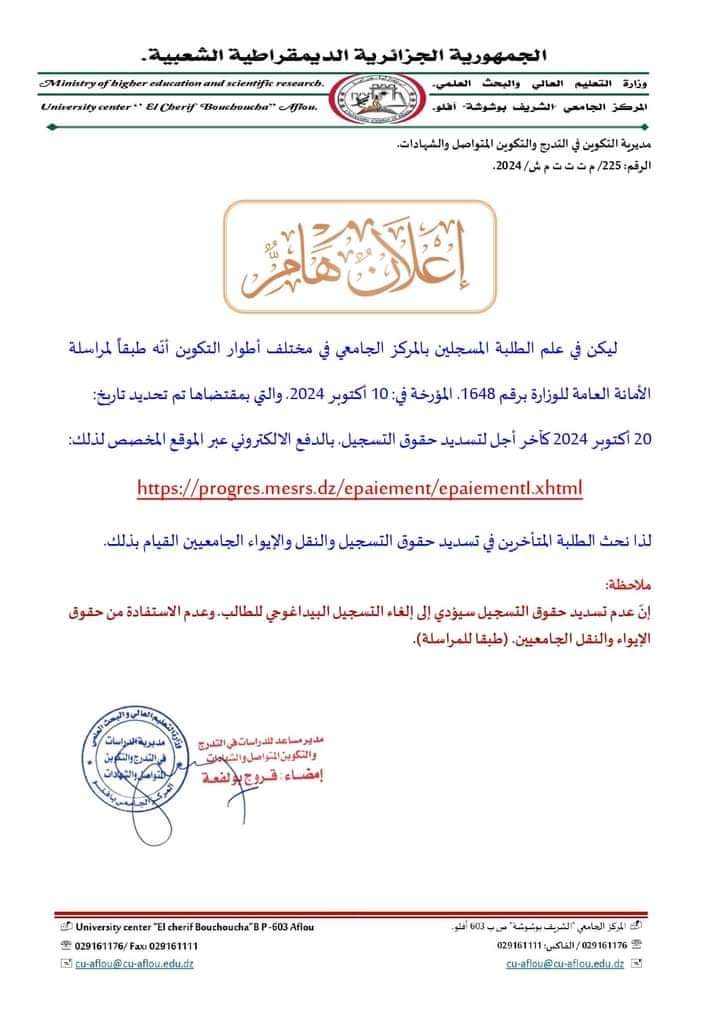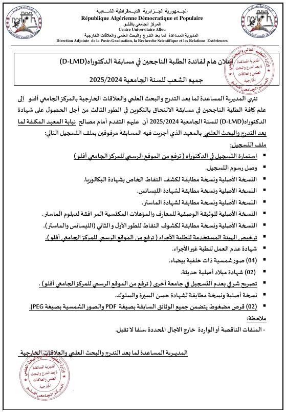 إعلان هام خاص بالناجحين في مسابقة الدكتوراه 2025/2024 جميع الشعب