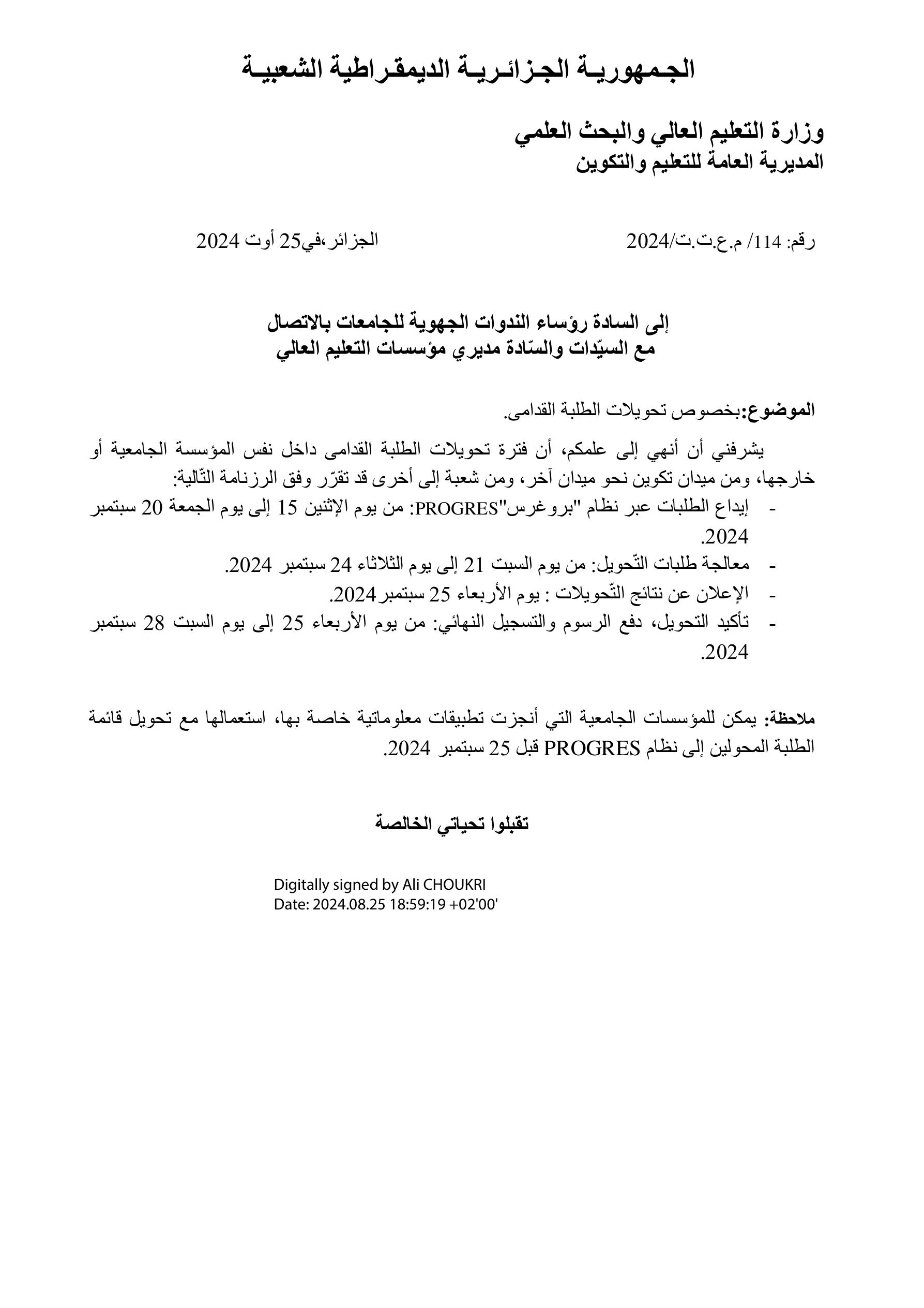 بخصوص التحويلات الجامعية 2025-2026