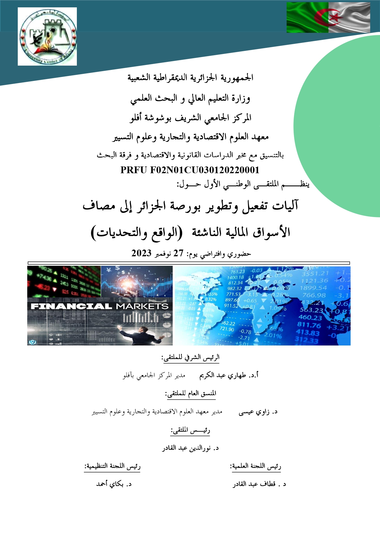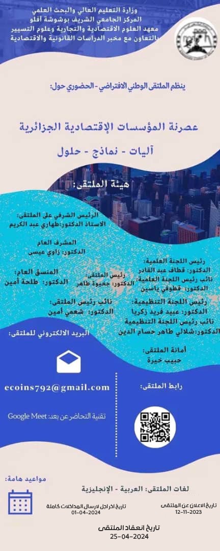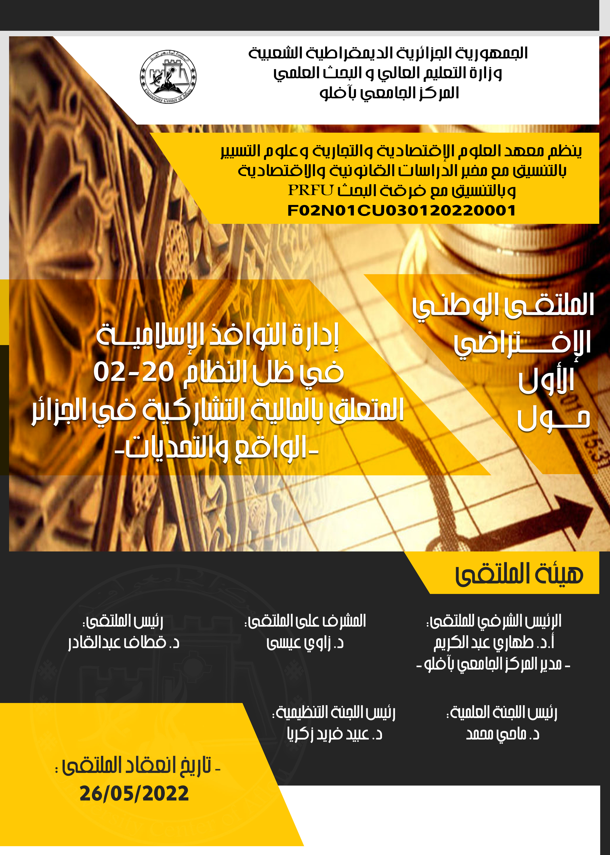 الملتقى الافتراضي الوطني الأول حول: إدارة النوافذ الاسلامية في ظل النظام 20-02 المتعلق بالمالية التشاركية في الجزائر
