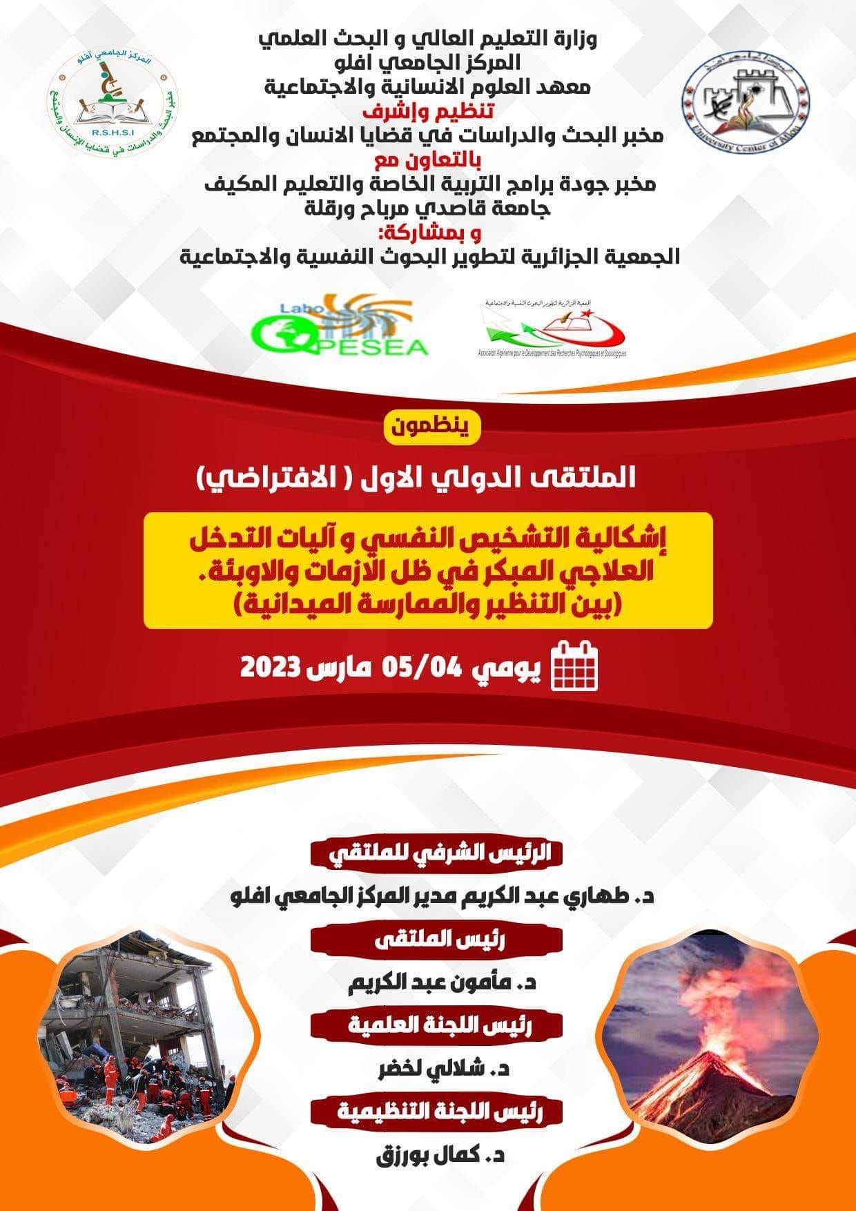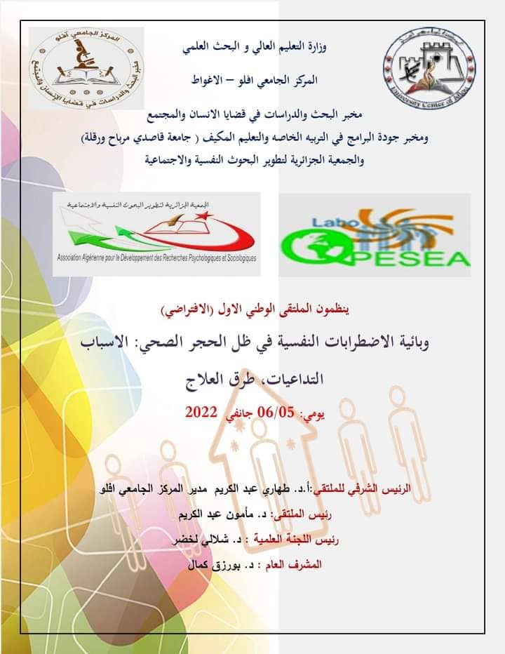 الملتقى الدولي الاول(الافتراضي): التشخيص النفسي والتدخل العلاجي المبكر في ظل الأزمات والأوبئة (بين التنظير والممارسة الميدانية)