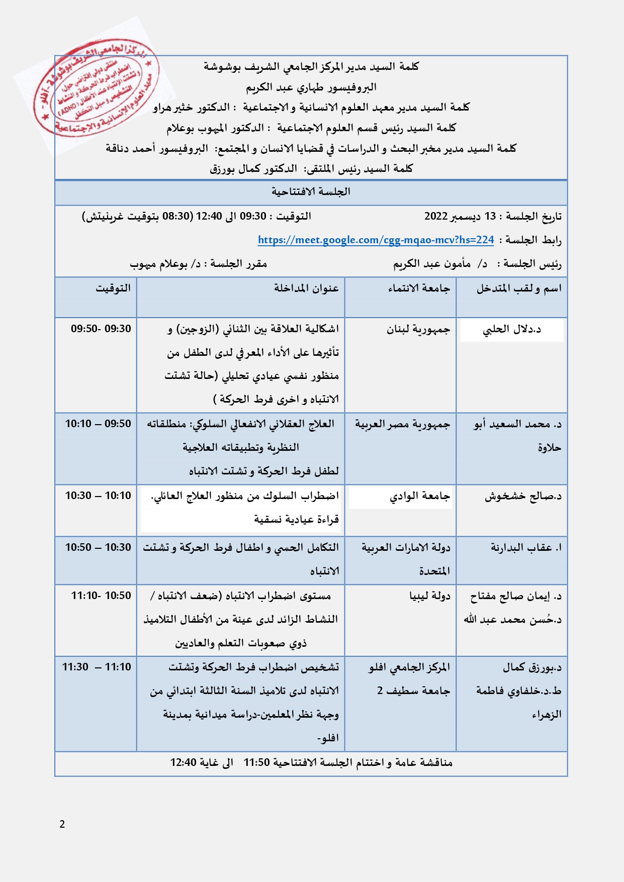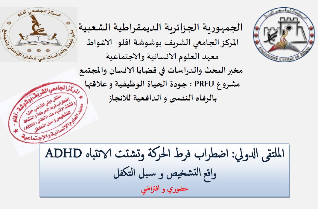 الملتقى الدولي:اضطراب فرط الحركة وتشتت الانتباهADHDواقع التشخيص وسبل التكفل