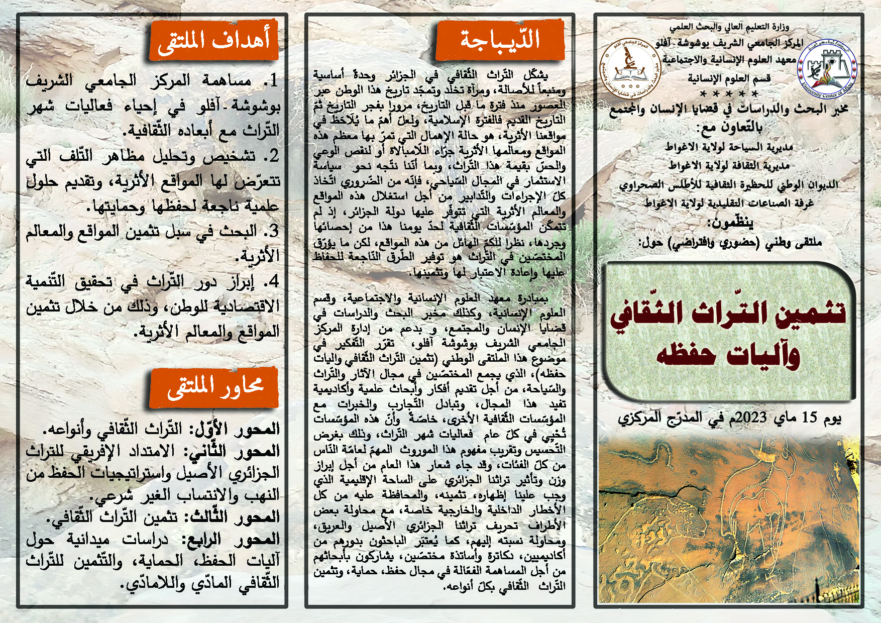 استمارة المشاركة في فعاليات الملتقى الوطني الافتراضي الأول( دراسات حول المجتمع الصحراوي في الجزائر - مدخل متعدد المقاربات)