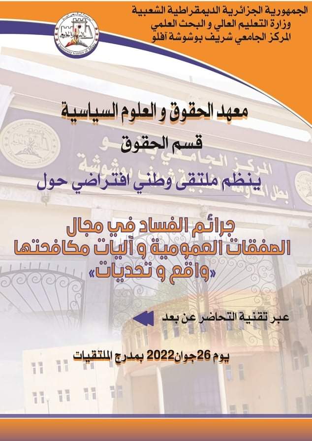 ملتقى وطني:جرائم الفسادفي مجال الصفقات العمومية وآليات مكافحتها-واقع وتحديات-