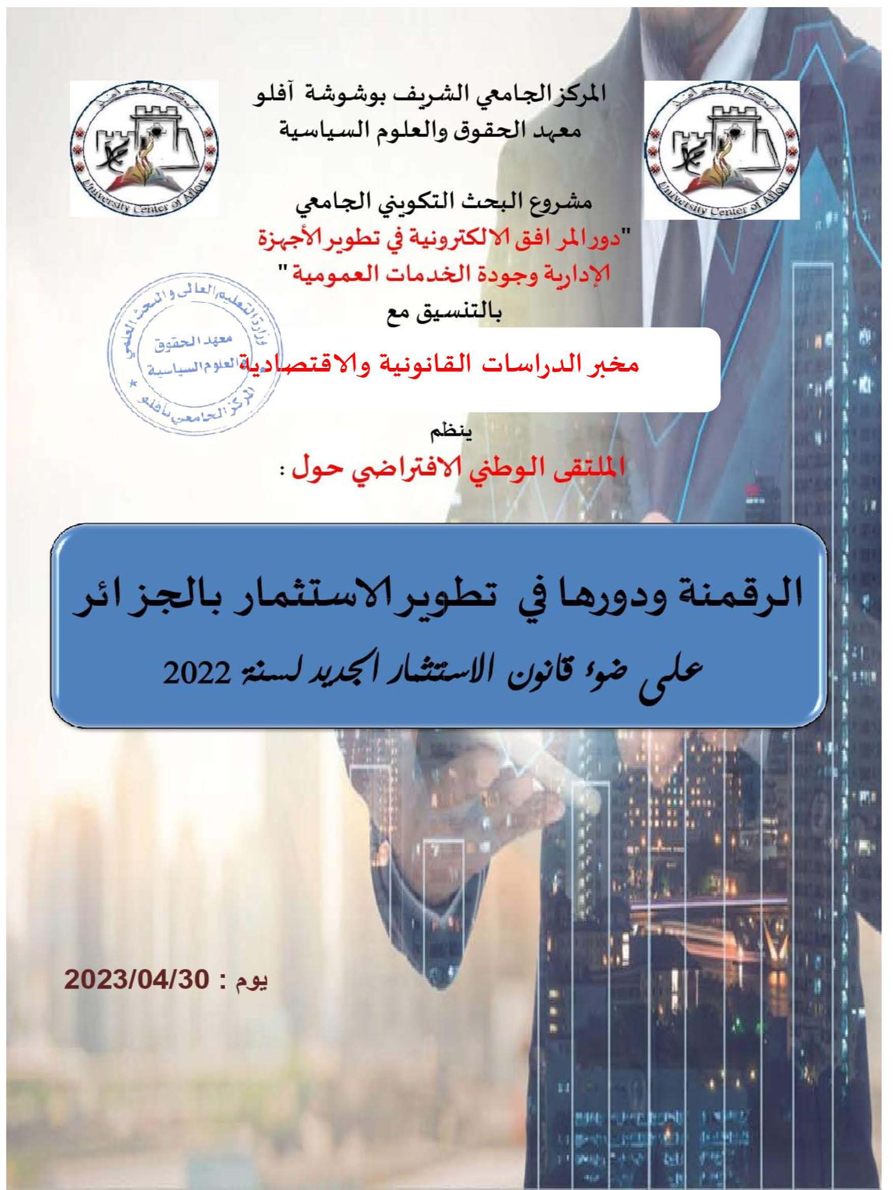 الملتقى الوطني: الرقمنة ودروها في تطوير الاستثمار بالجزائر -على ضوء قانون الاستثمار الجديد لسنة 2022