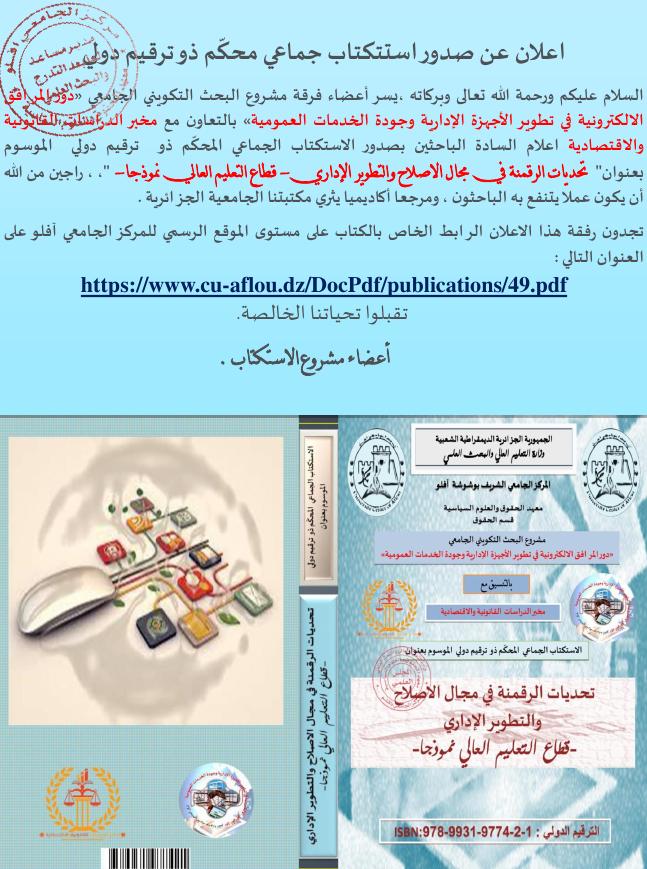 اعلان صدور استكتاب جماعي محكم: تحديات الرقمنة في مجال الإصلاح والتطوير الإداري- قطاع التعليم العالي نموذجا-