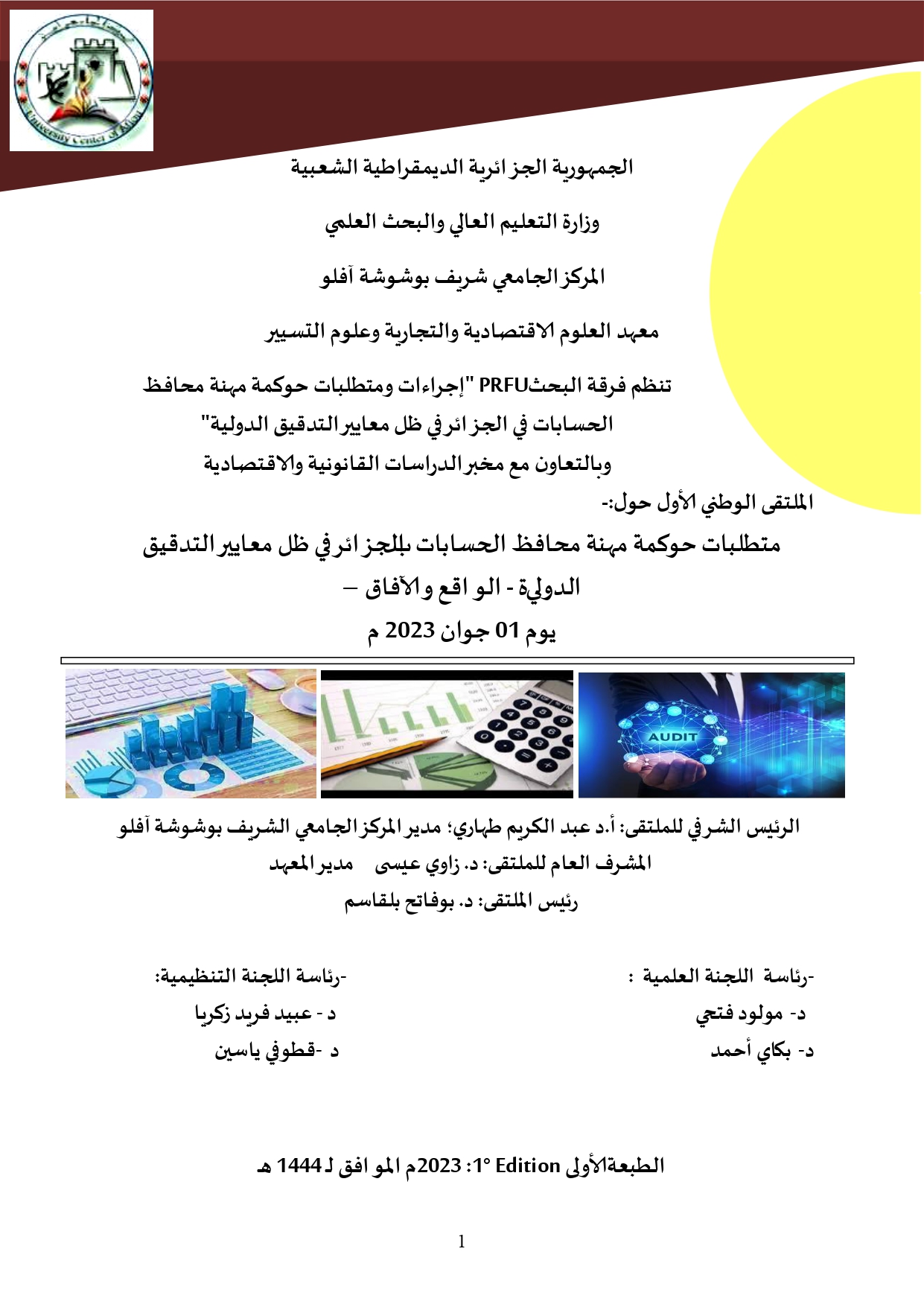 الملتقى الوطني الأول الافتراضي حول: متطلبات حوكمة مهنة محافظ الحسابات بالجزائر في ظل معايير التدقيق الدولية -الواقع-الآفاق.