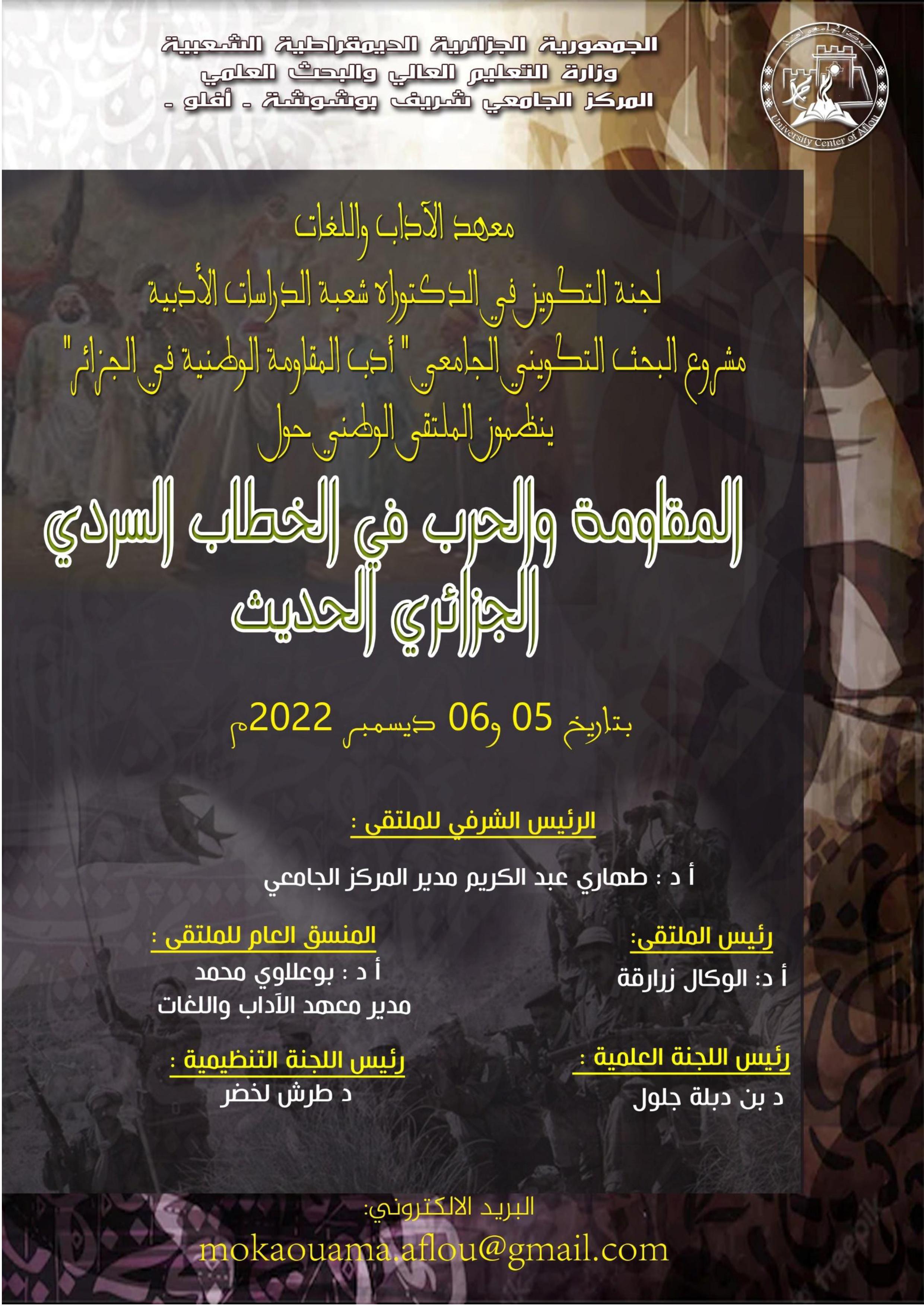 ملتقى وطني: المقاومة والحرب في الخطاب السردي الجزائري الحديث