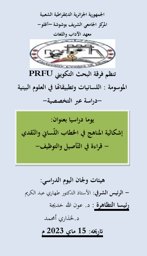 يوم دراسي بعنوان: إشكالية المناهج في الخطاب اللسانيوالنقدي- قراءة في التأصيل والتوظيف-