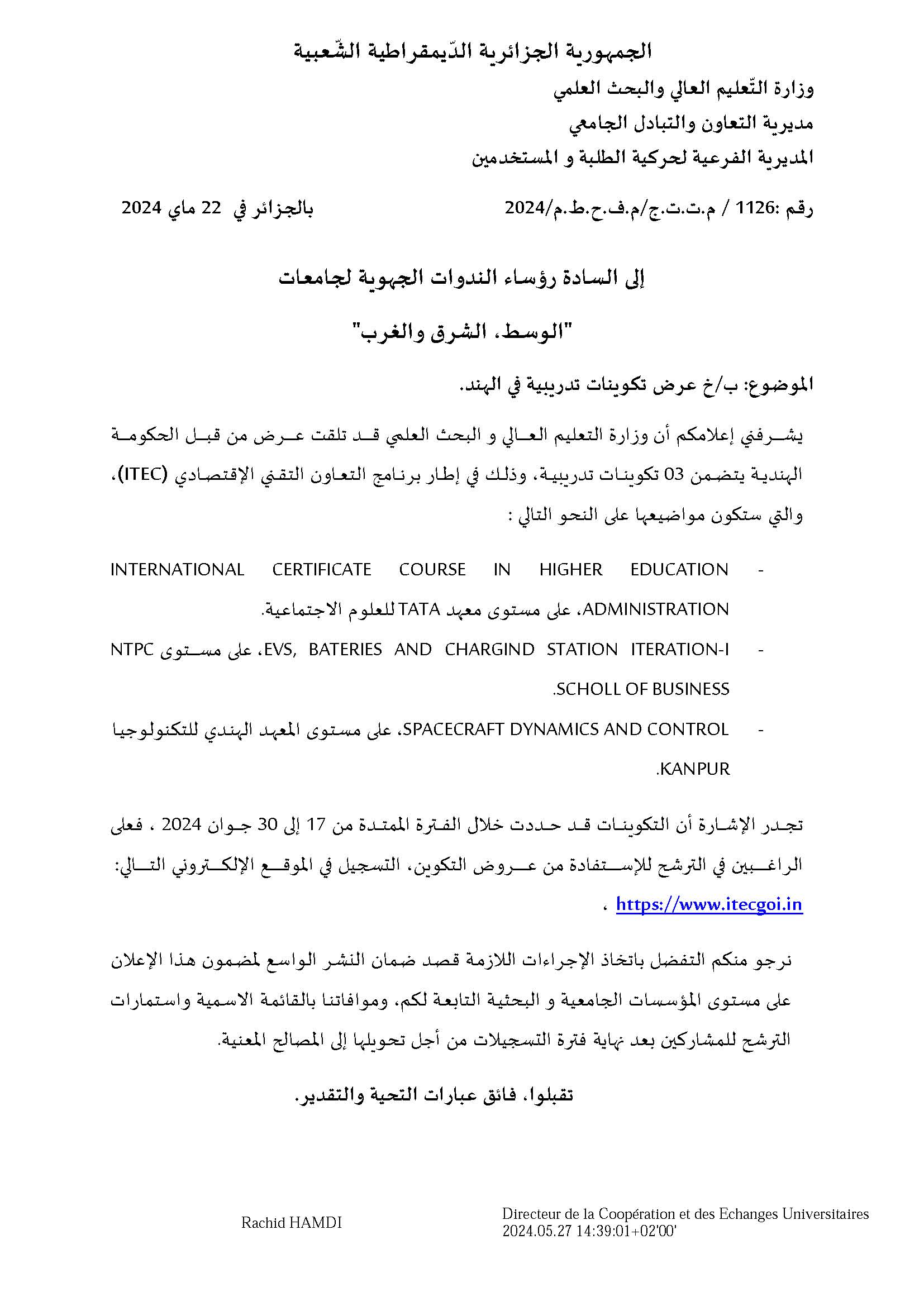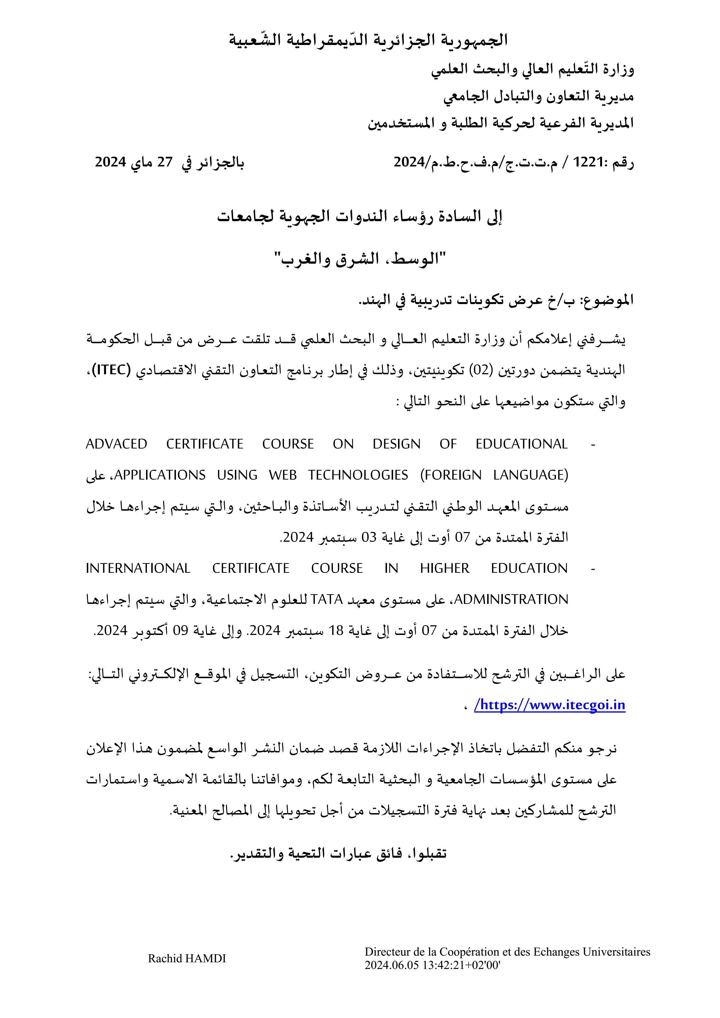 عروض لـ 3 تكوينات ت تدريبية في الهند من 07 أوت الى 18 سبتمبر 2024
