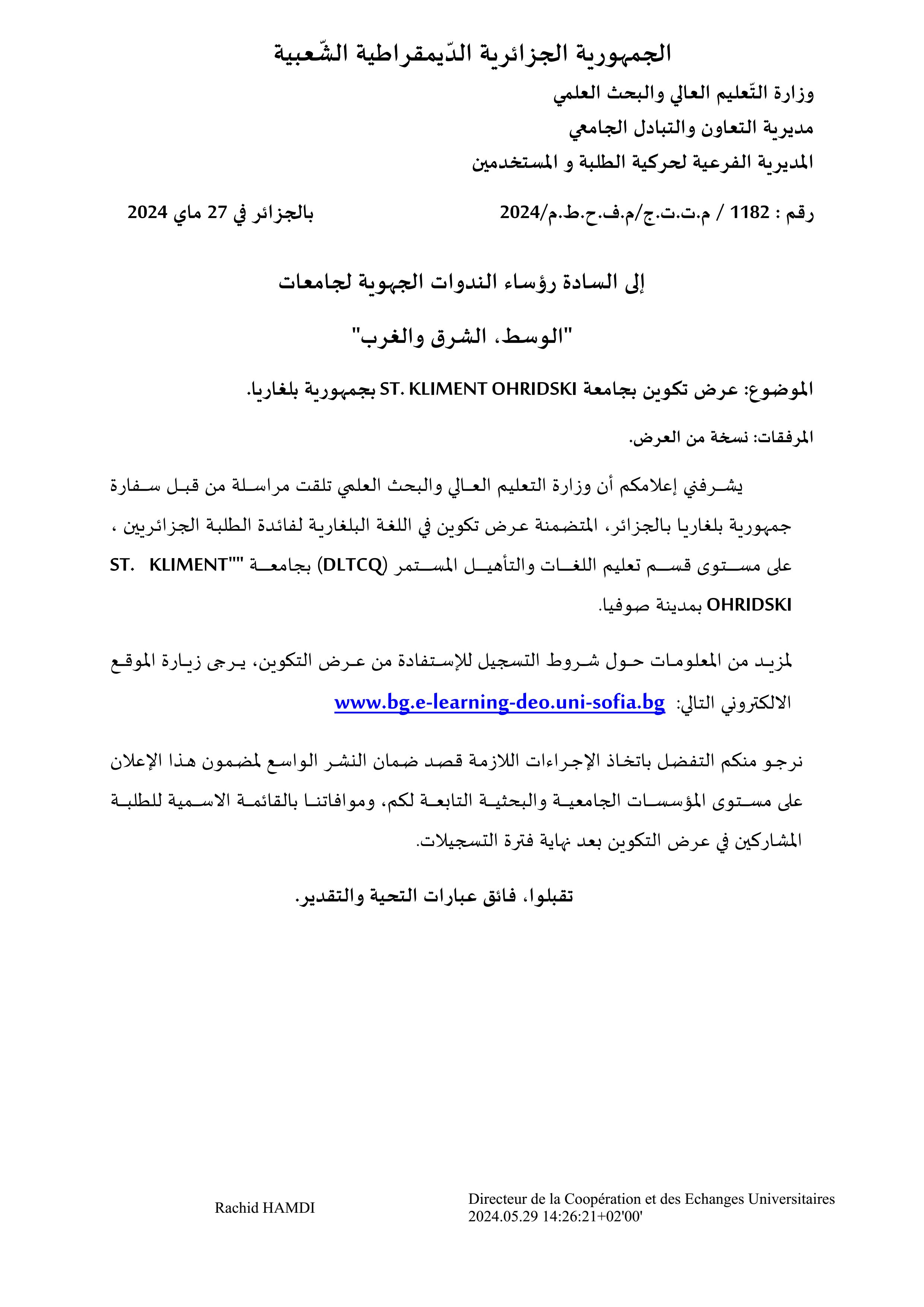 عرض تكوين بجامعة ST. KLIMENT OHRIDSKI بجمهورية بلغاريا .