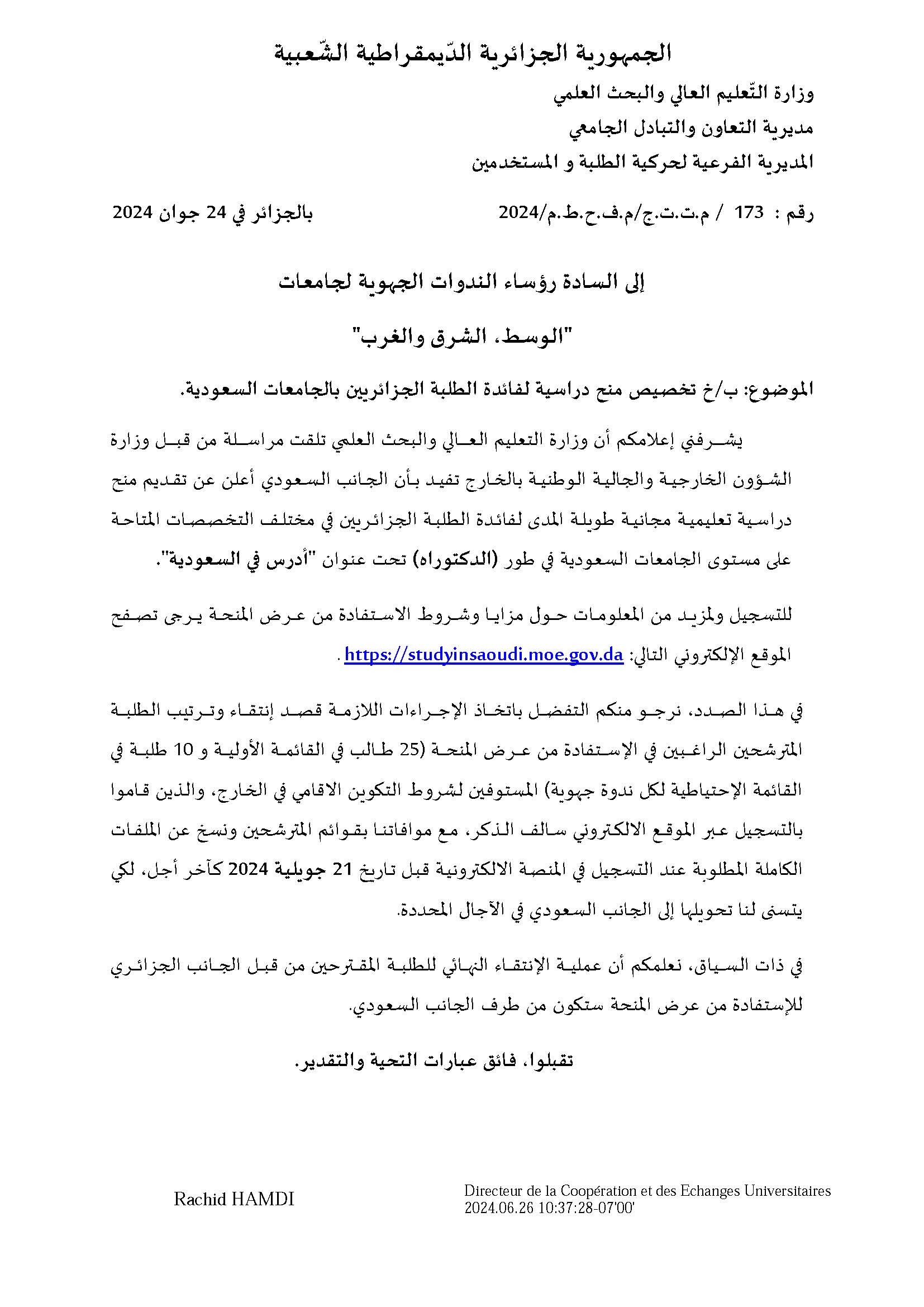 منح دراسية بالجامعات السعودية خاصة بالطلبة الجزائريين