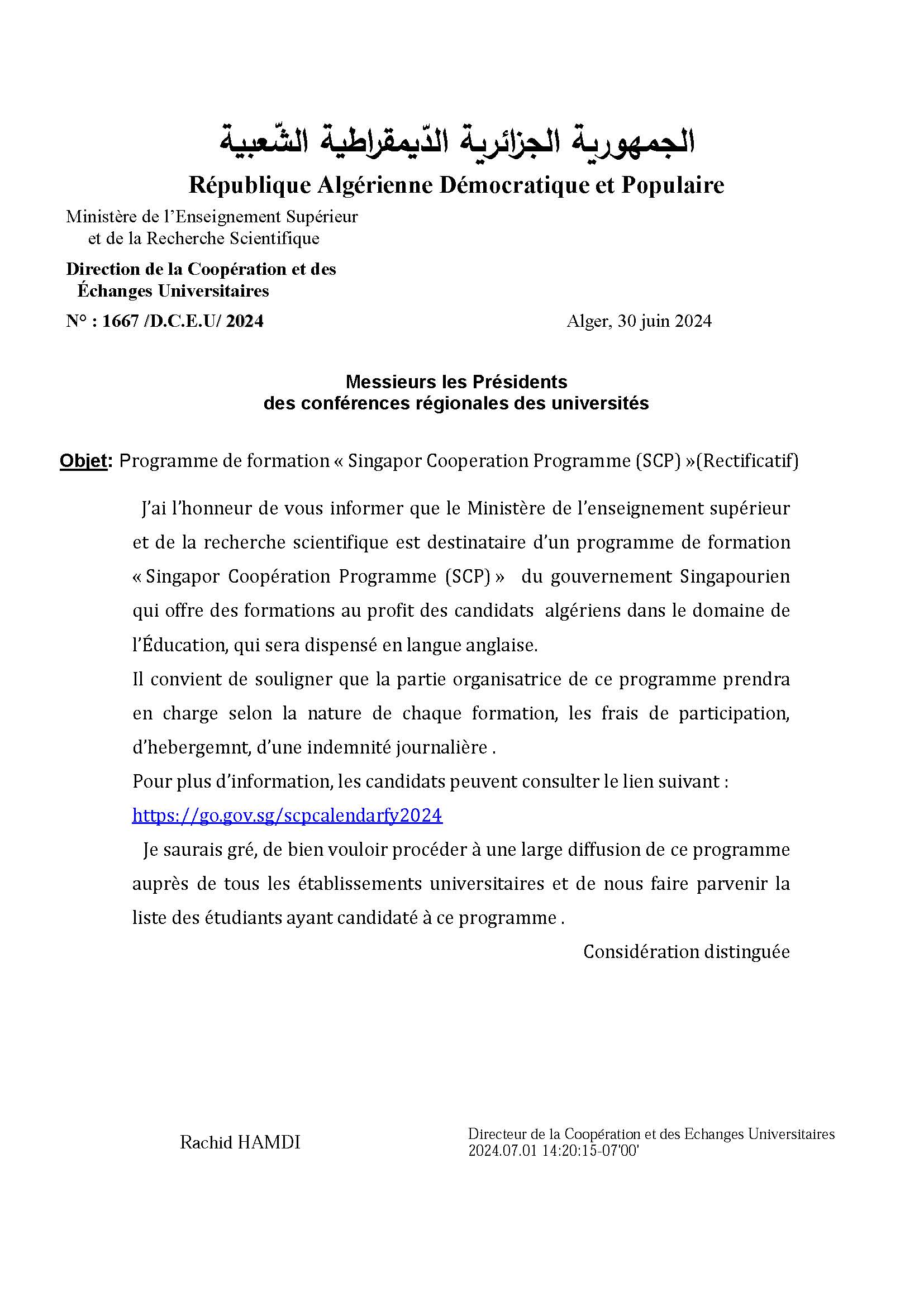 برنامج التدريب "برنامج التعاون السنغافوري (SCP)"