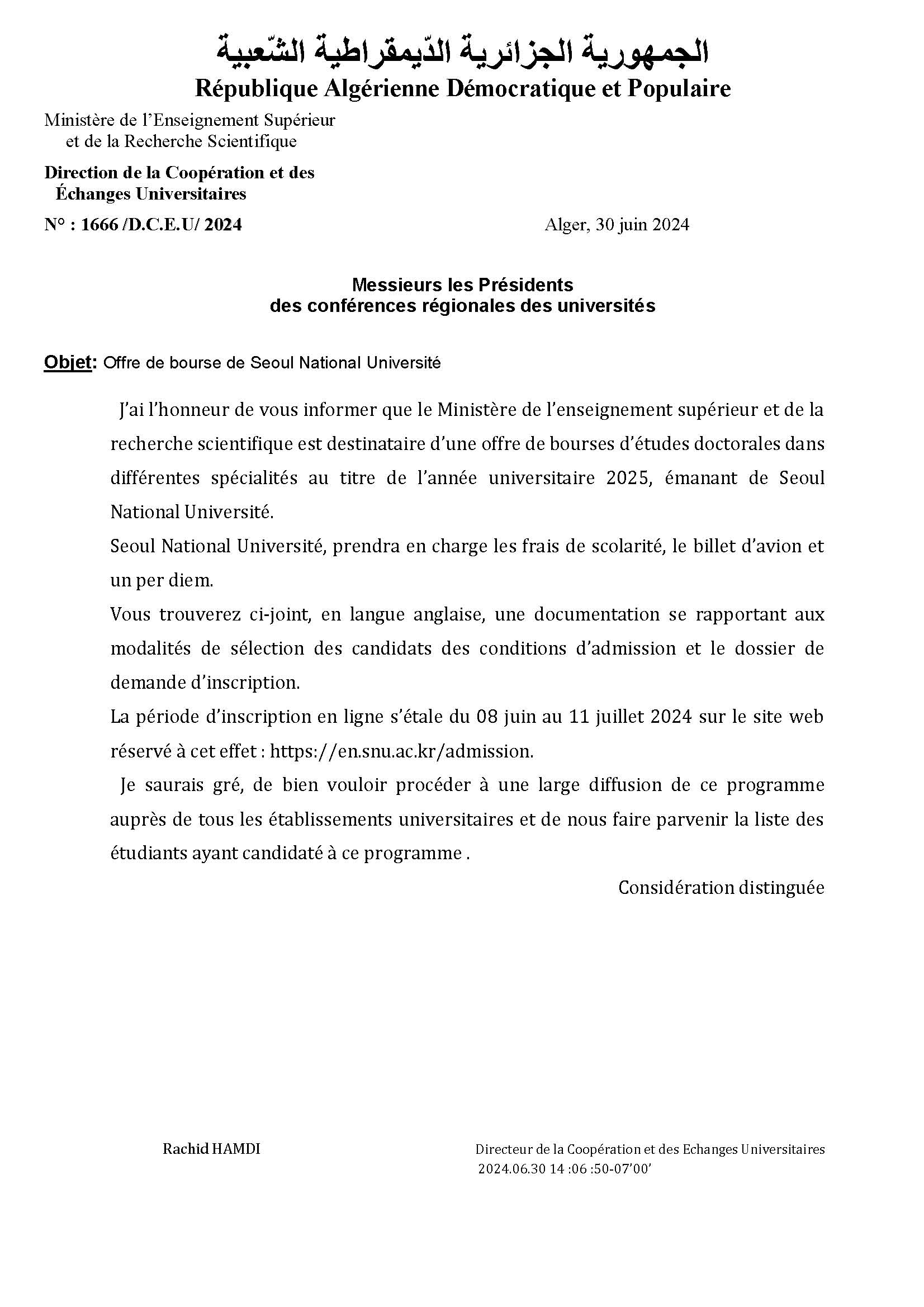 نتائج المسابقة الوطنية للدكتوراه الطور الثالث ( LMD) 2024/2025 شعبة التاريخ تخصص تاريخ الجزائر المعاصر