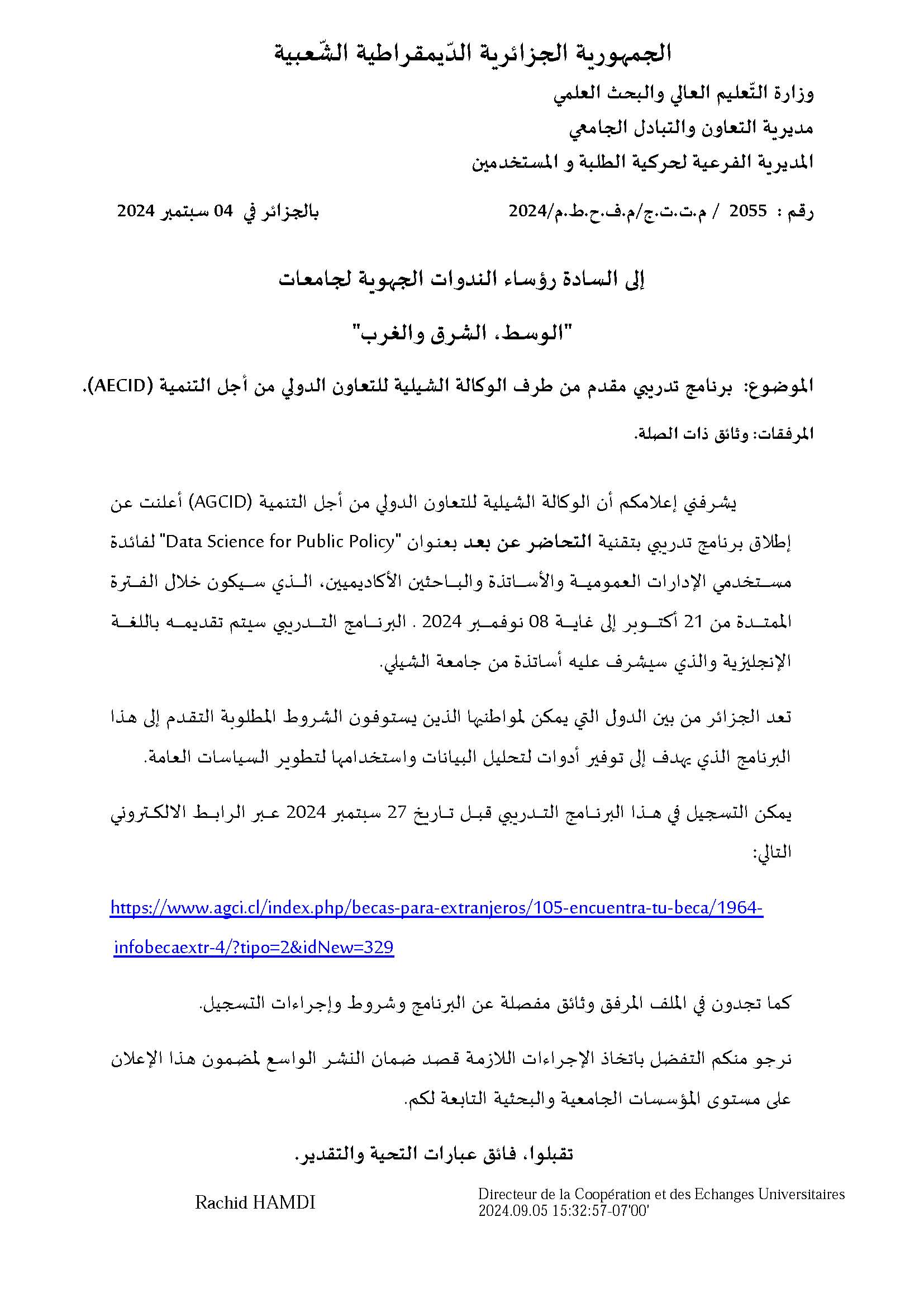 برنامج تدريبي مقدم من طرف الوكالة الشيلية للتعاون الدولي من أجل التنمية AECID