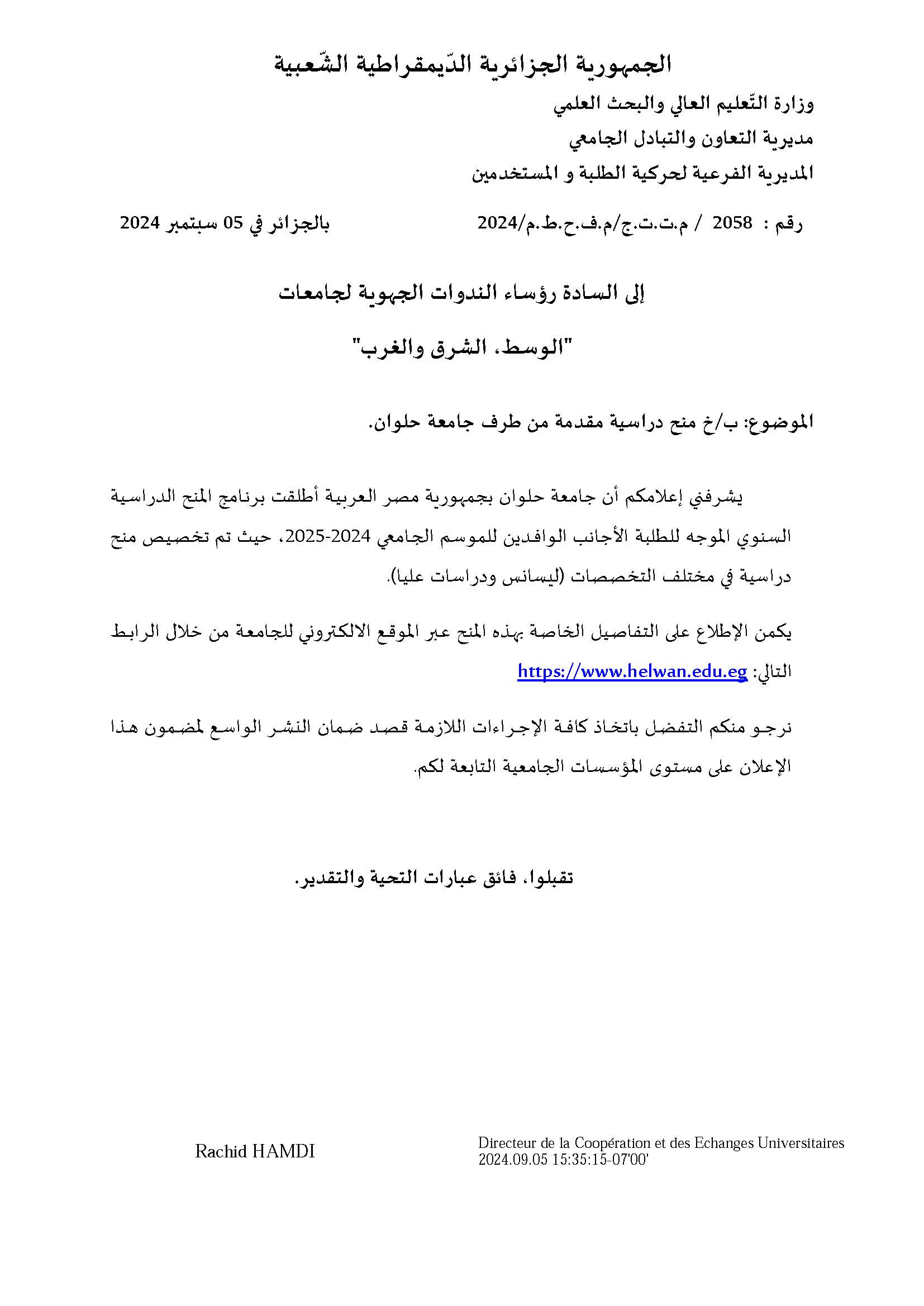 منحة دراسية مقدمة من طرف جامعة حلوان-مصر-