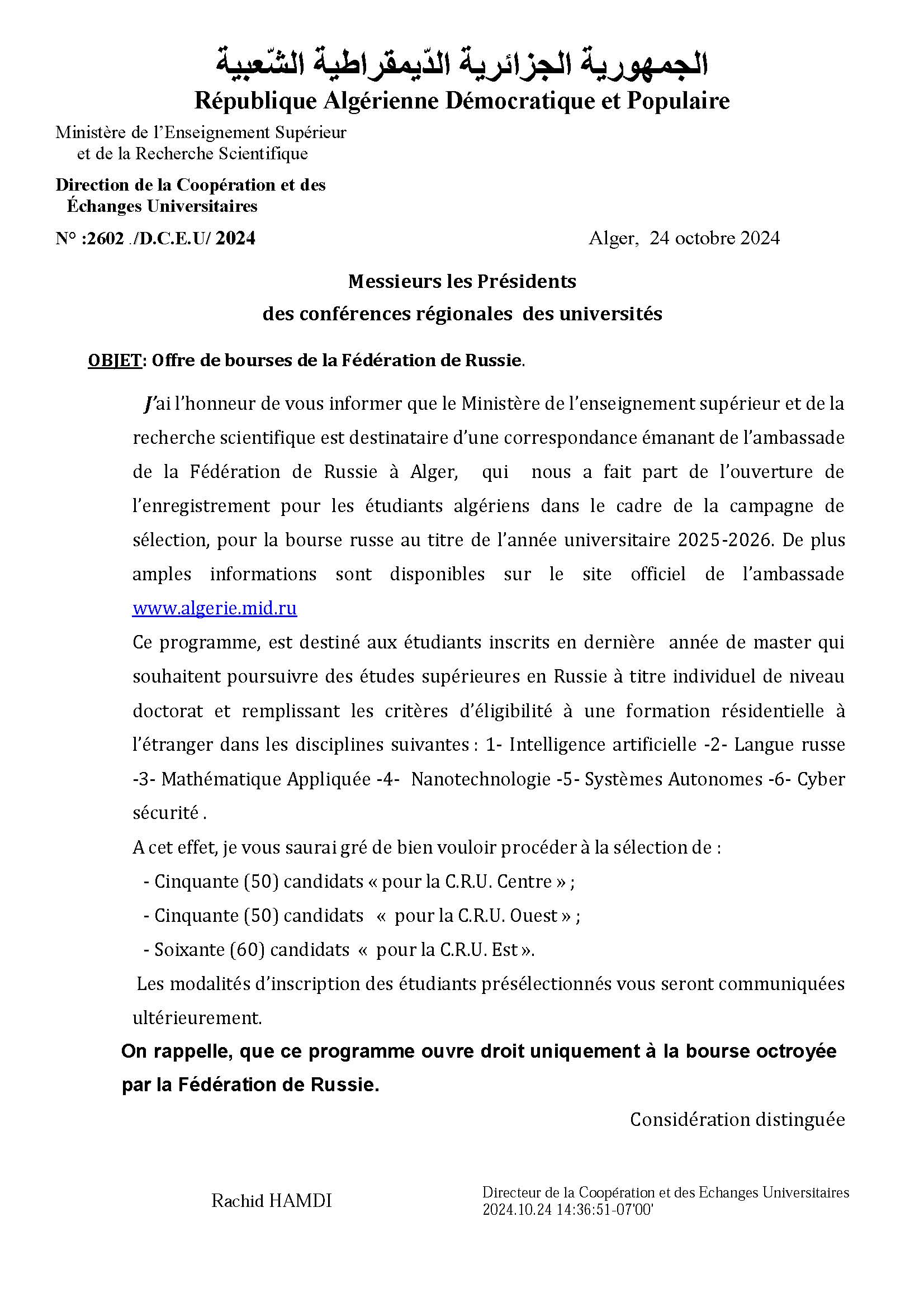 القائمة الاسمية للمترشحين لمسابقة الدكتوراه اعلام آلي يوم 08/02/2025