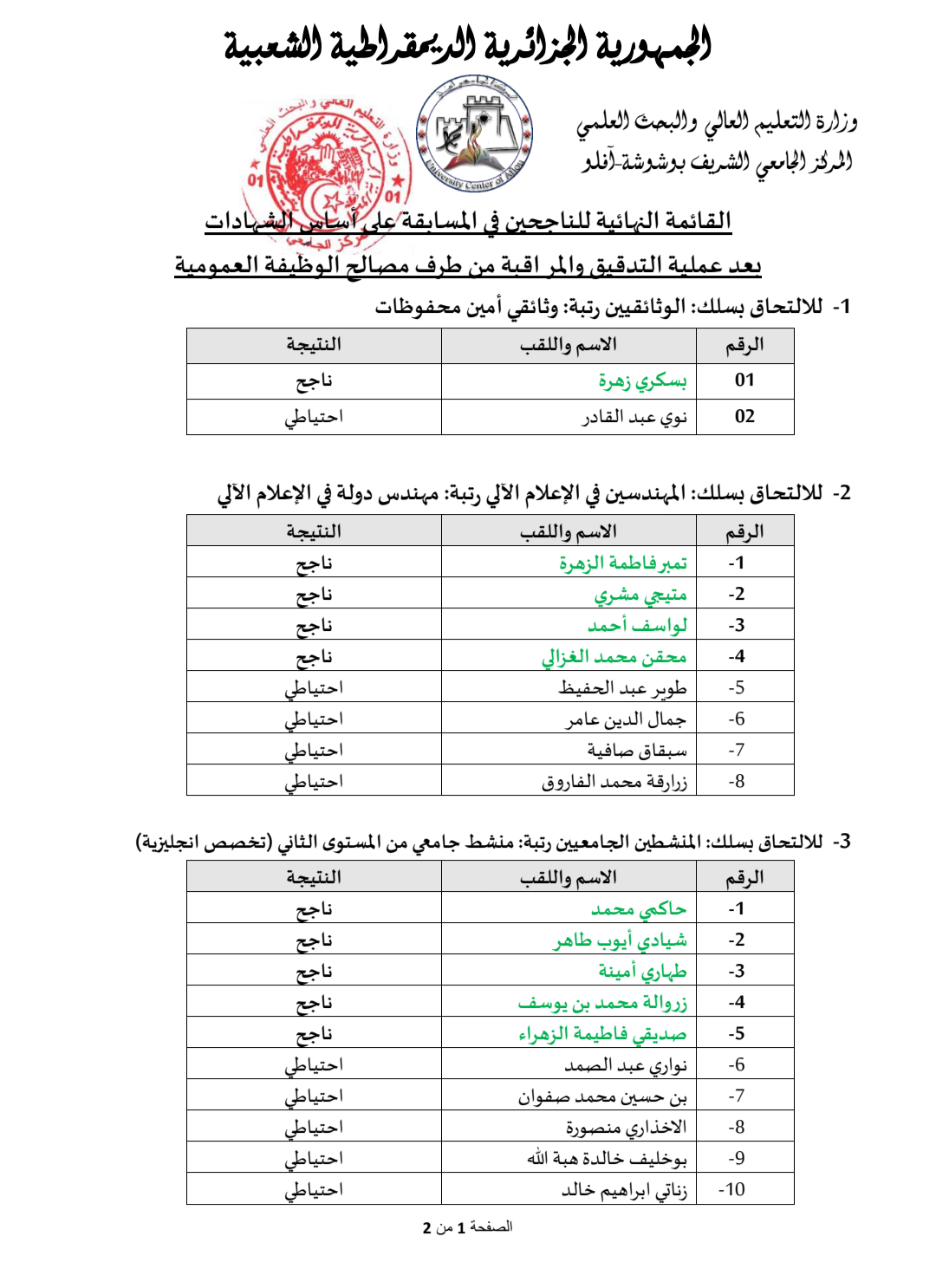 نتائج مسابقة التوظيف