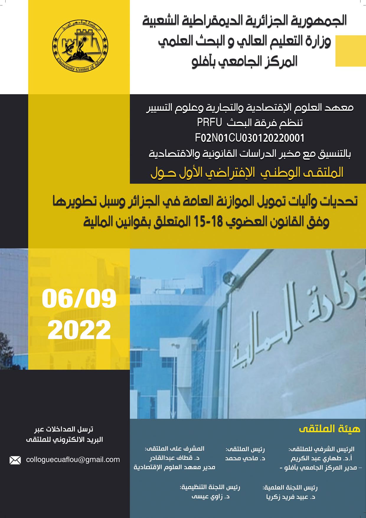 الملتقى الوطني الأول الافتراضي حول: تحديات وآليات تمويل الموازنة العامة في الجزائر وسبل تطويرها وفق القانون العضوي 18-15 المتعلق بقوانين المالية.