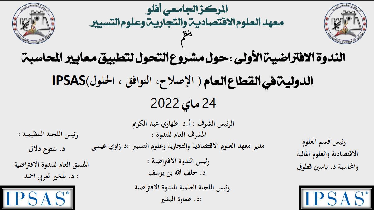 الندوة الافتراضية الأولى حول: مشروع التحول لتطبيق معايير المحاسبة الدولية في القطاع العام IPSAS (الإصلاح؛ التوافق؛ الحلول).