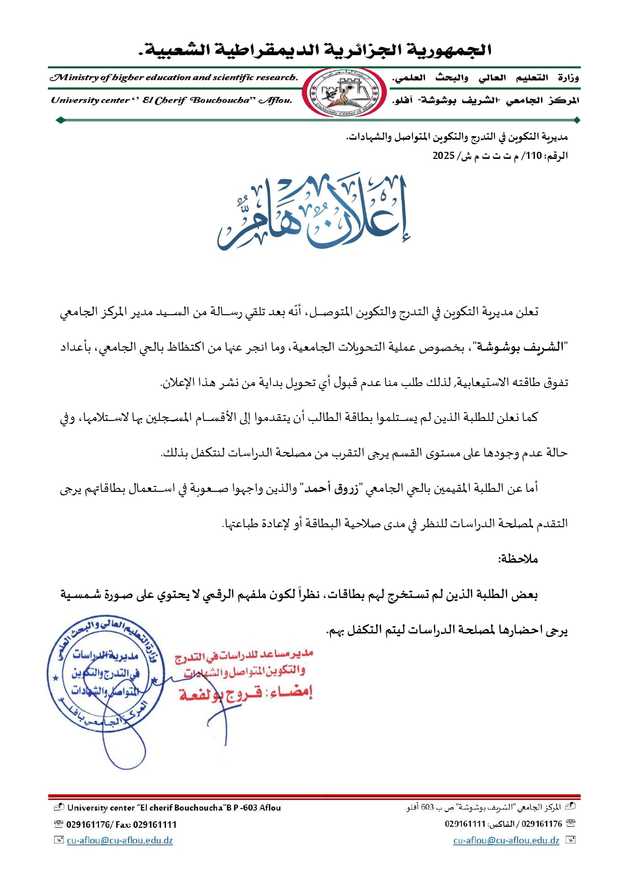 بخصوص التحويلات الجامعية 2025-2026