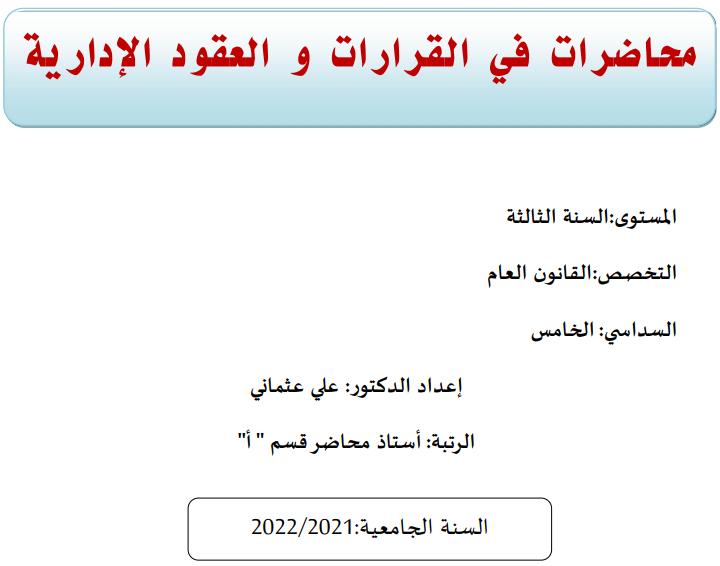 محاضرات في مقياس النشاط الإداري -الجزء الثاني-