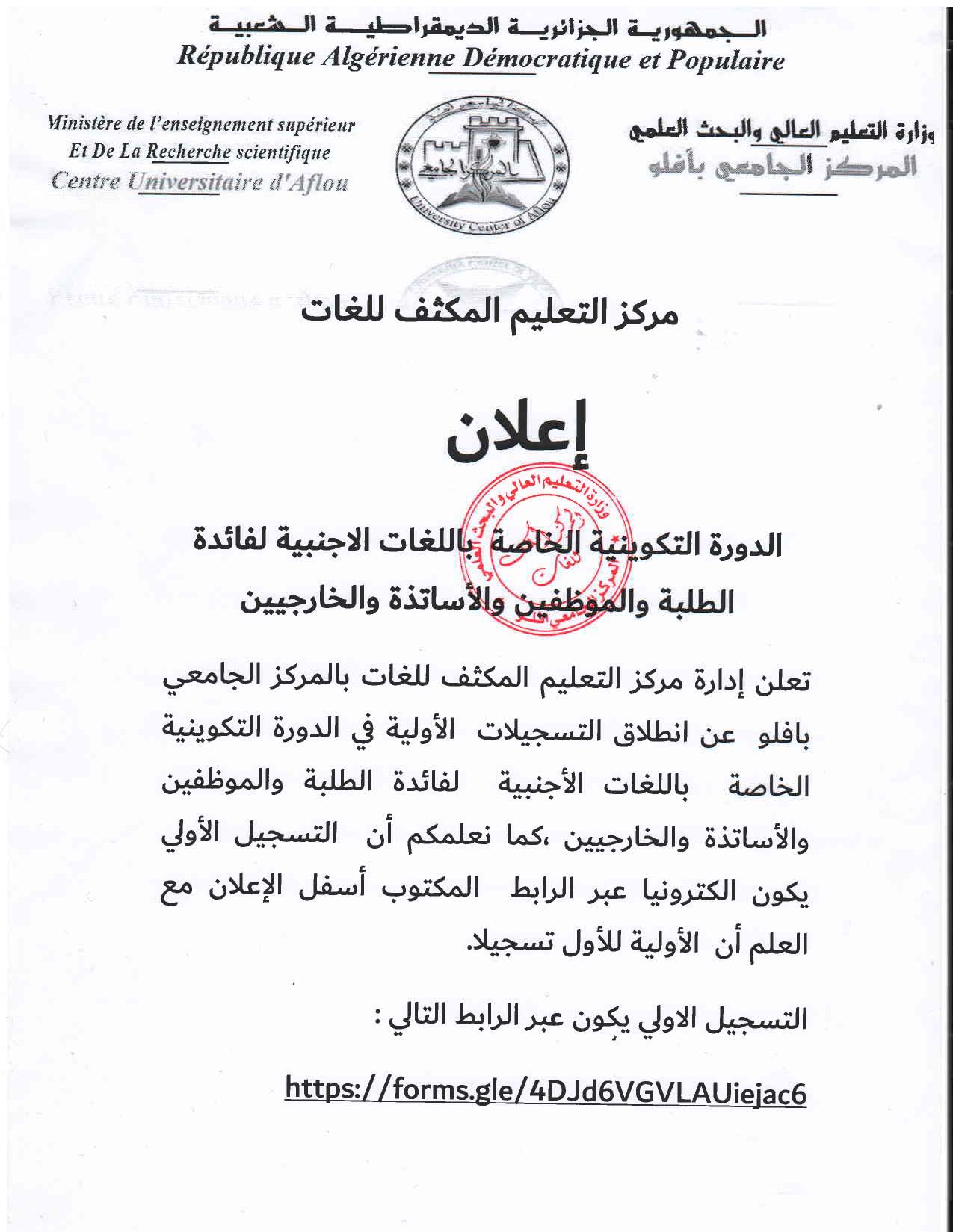 يُعتبر مركز التعليم المكثف للغات (CEIL) فضاءً علمياً متخصصاً لتطوير ملكة التخاطب بغير اللغة العربية لدى الراغبين في تعلم اللغة الانجليزية بهدف التواصل مع غير الناطقين بالعربية. ويعتمد المركز على آليات التكوين العالي، المكثف، والمتخصص. ويتمثل هدفه الأساسي في تلبية الاحتياجات اللغوية للأسرة الجامعية.